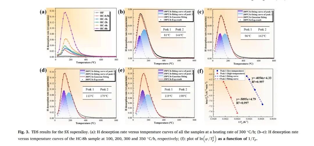 -脫附峰擬合(Gaussian 分峰),計(jì)算氫脫附活化能(Choo-Lee 方程):